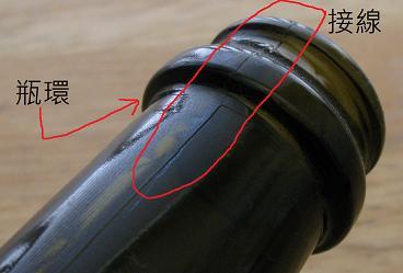 找出瓶子兩半的接線。接線到瓶口凸出的瓶環是壓力最集中的酒瓶弱點。